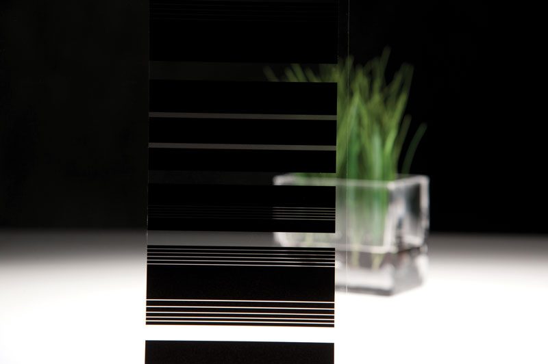 Give a high tech appearance to your glass surfaces with different patterns offering vertical or horizontal stripes of various thickness and colour density on clear, opaque, or black film. These patterns create a dramatic difference by significantly altering the appearance of glass surfaces.